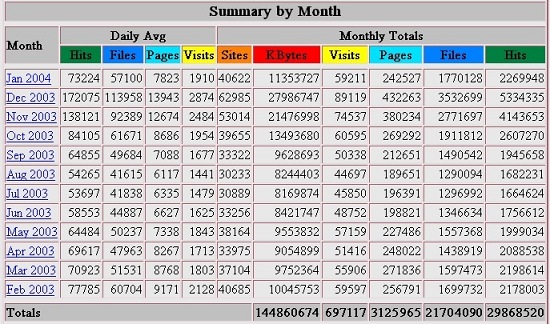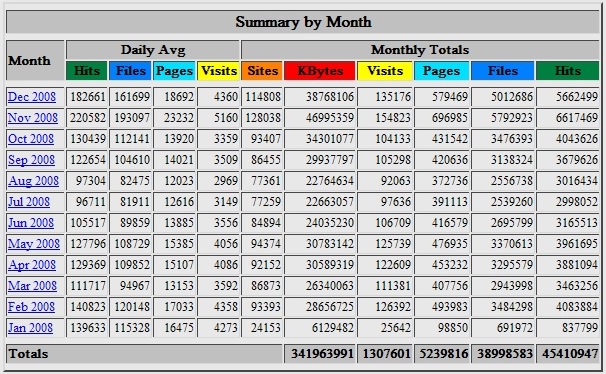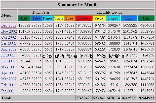 Broken Hit Counter for most of Jan. 08, plus several days in Oct. and March